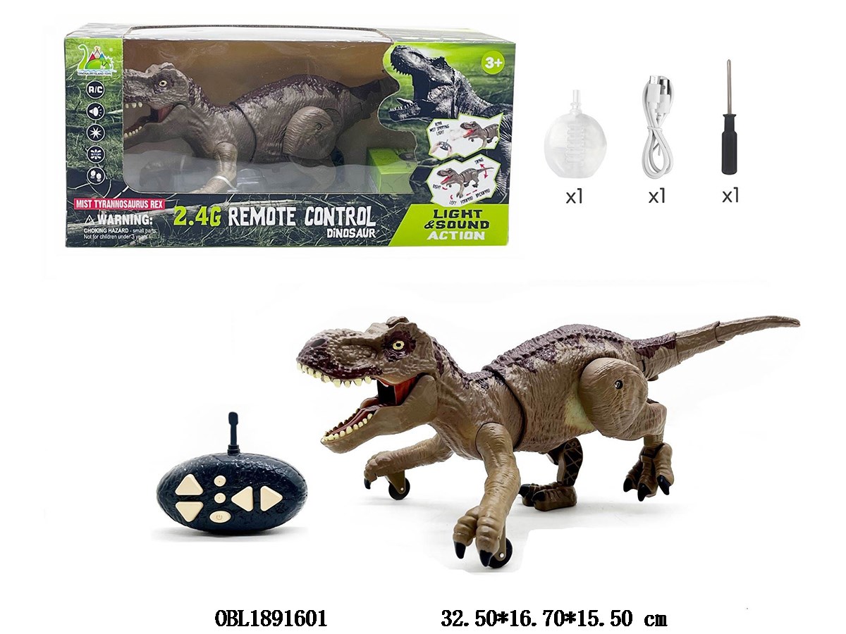 Remote control crawling T-Rex with spray, USB cable, 3.7v lithium battery, electric remote control, 2 * AA, no electric power, 2.4G frequency