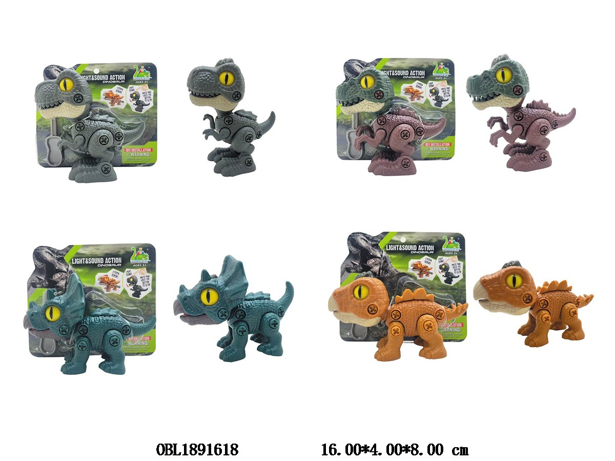 Simulated disassembly and assembly of Tyrannosaurus rex/Chiropod/Triceratops/Stegosaur with sound and light 2 * AG13 package, 4 mixed models with electricity included