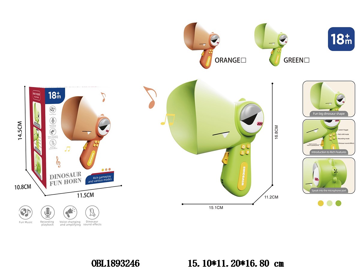 Home > Trumpet > Dinosaur voice changer speaker set can record 2 * AA without power