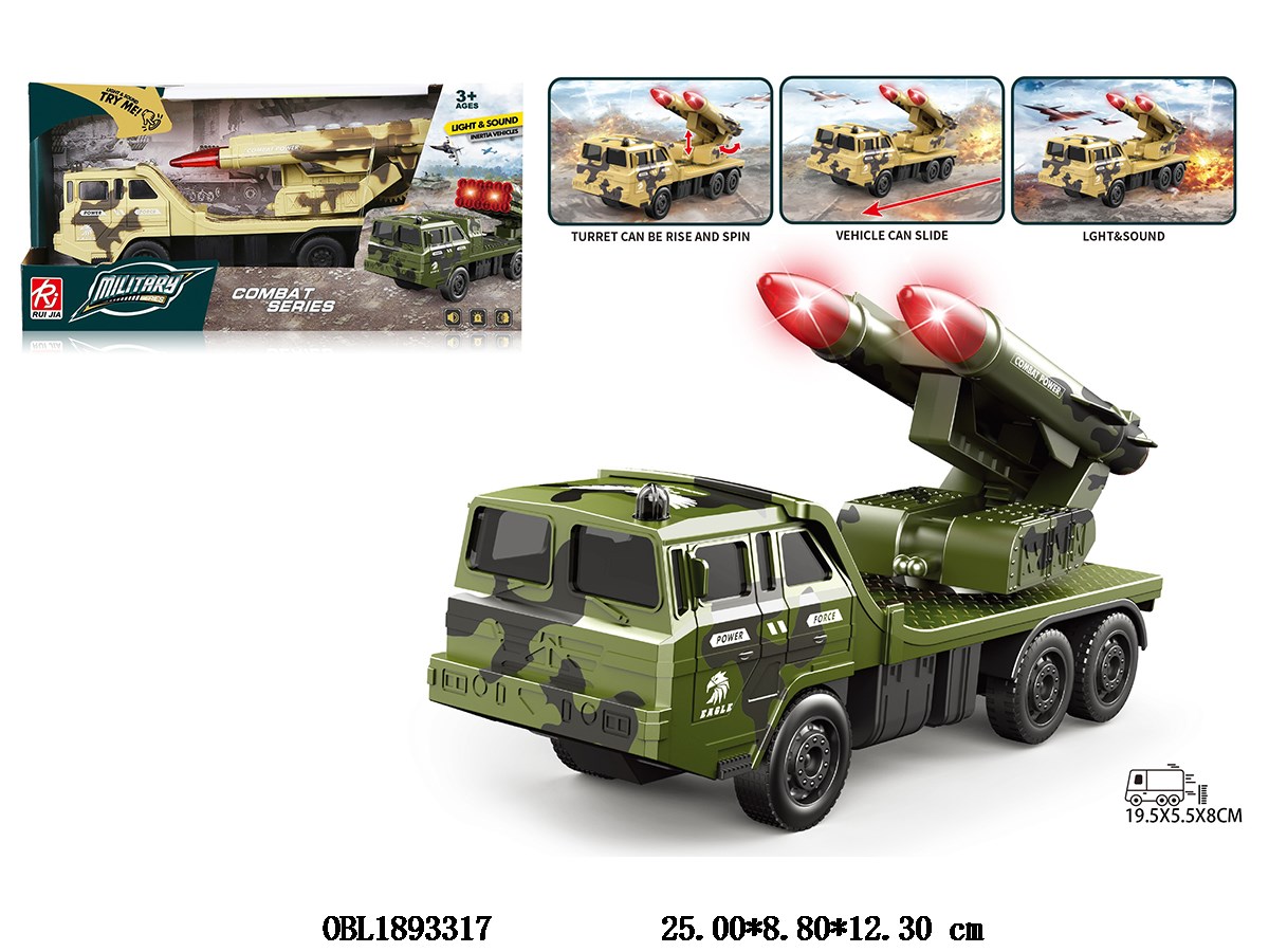 Inertial missile vehicle with lights, sound, 3 * AG13 package, electric, 2-color mixed design