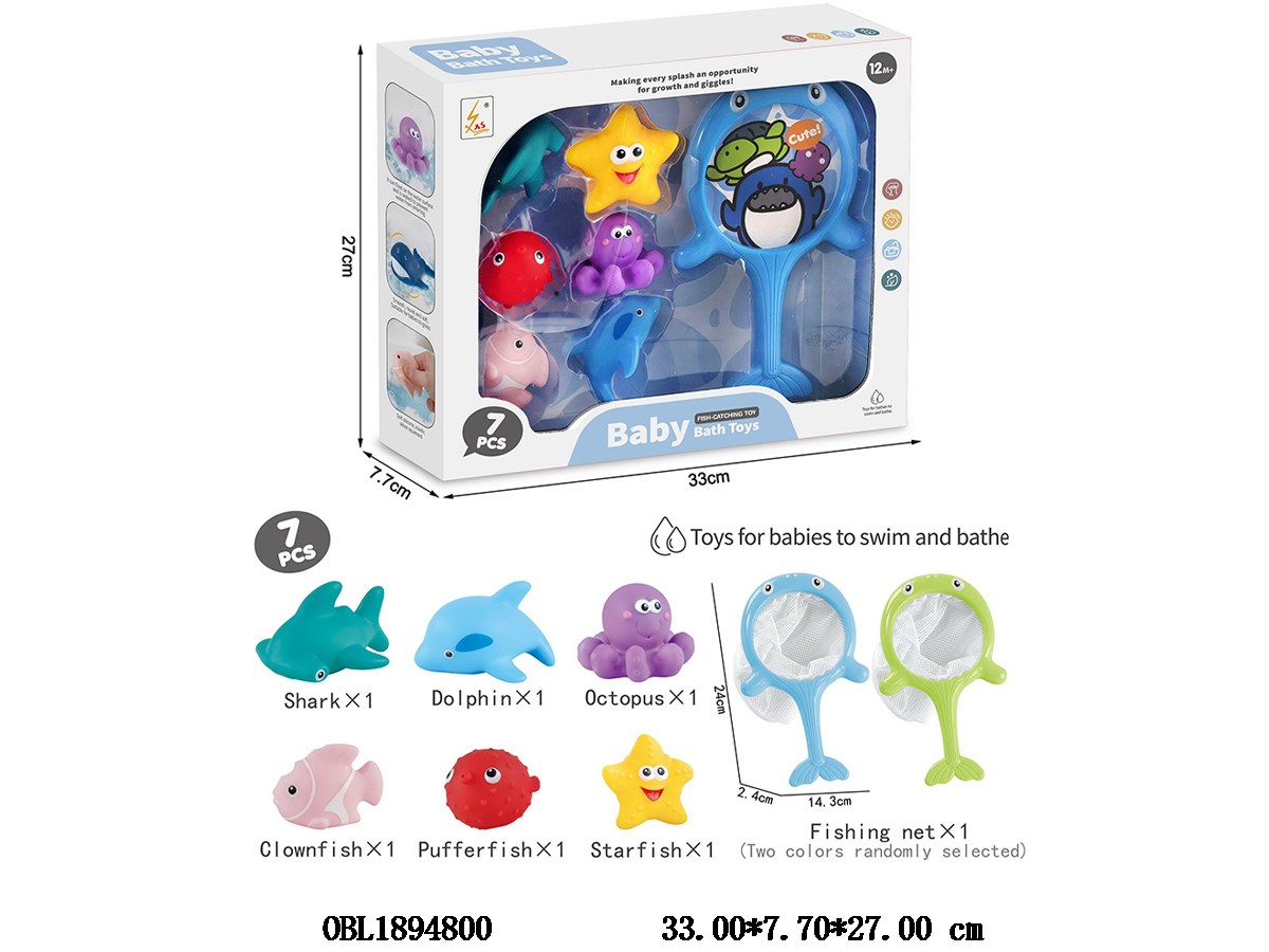 6 pieces of glue coated animals paired with fish fishing, color monochrome, random set