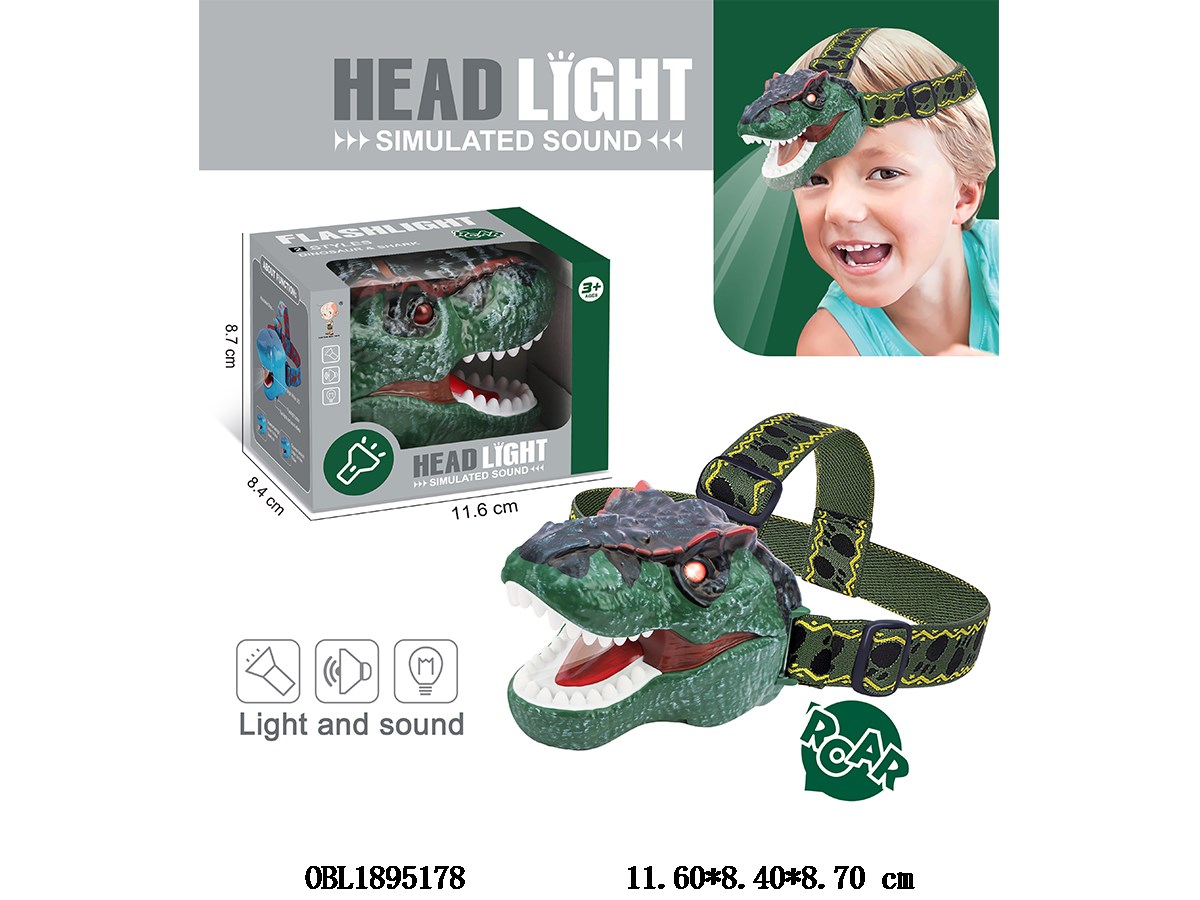 Dinosaur headlights with lighting and music 3 * AAA, no electricity included