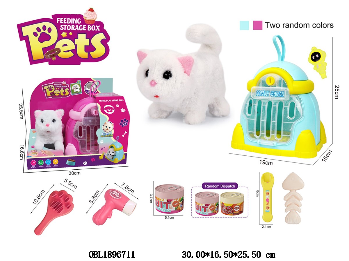 Home > B/O Animal > Electric plush kitten feeding set with meow 2 * AA, no electricity included, blue/pink, random feeding can, 2 colors, random