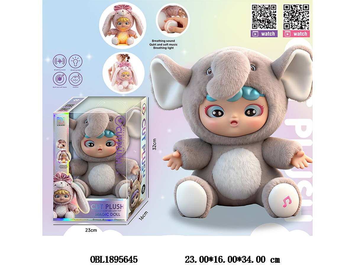 Electric gray purple elephant heartbeat doll with lighting, music, 4-speaker IC, 3 * AAA, non electric backpack with storage function