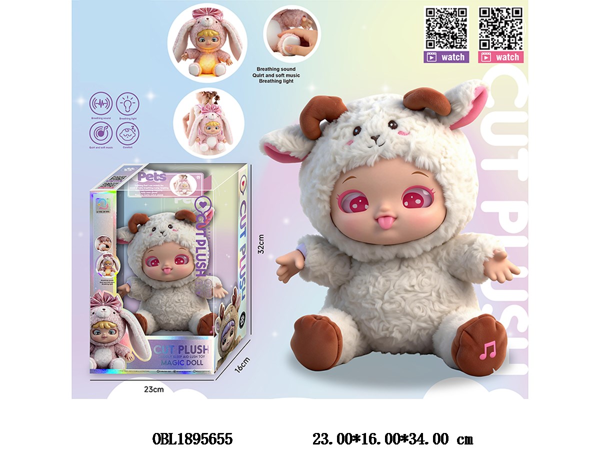 Electric white lamb heartbeat doll with lighting, music, 4 sound IC, 3 * AAA, non electric backpack with storage function