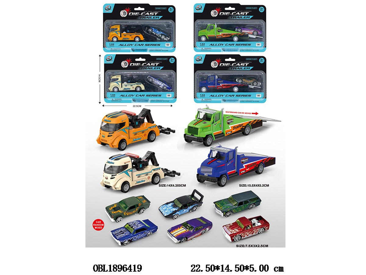 Home > Die-Cast Car > Alloy rebound rescue trailer towing 1 alloy sliding car, 2 models of 4-color mixed car, 6 models of random mixed car