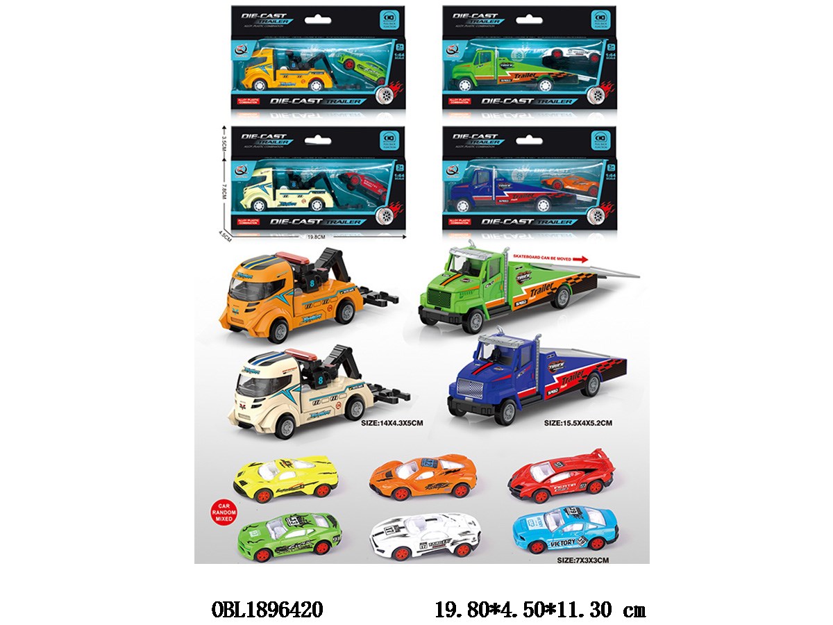 Home > Die-Cast Car > Alloy rebound rescue trailer towing 1 alloy rebound truck, 2 models of 4-color mixed vehicles, 6 models of random mixed vehicles