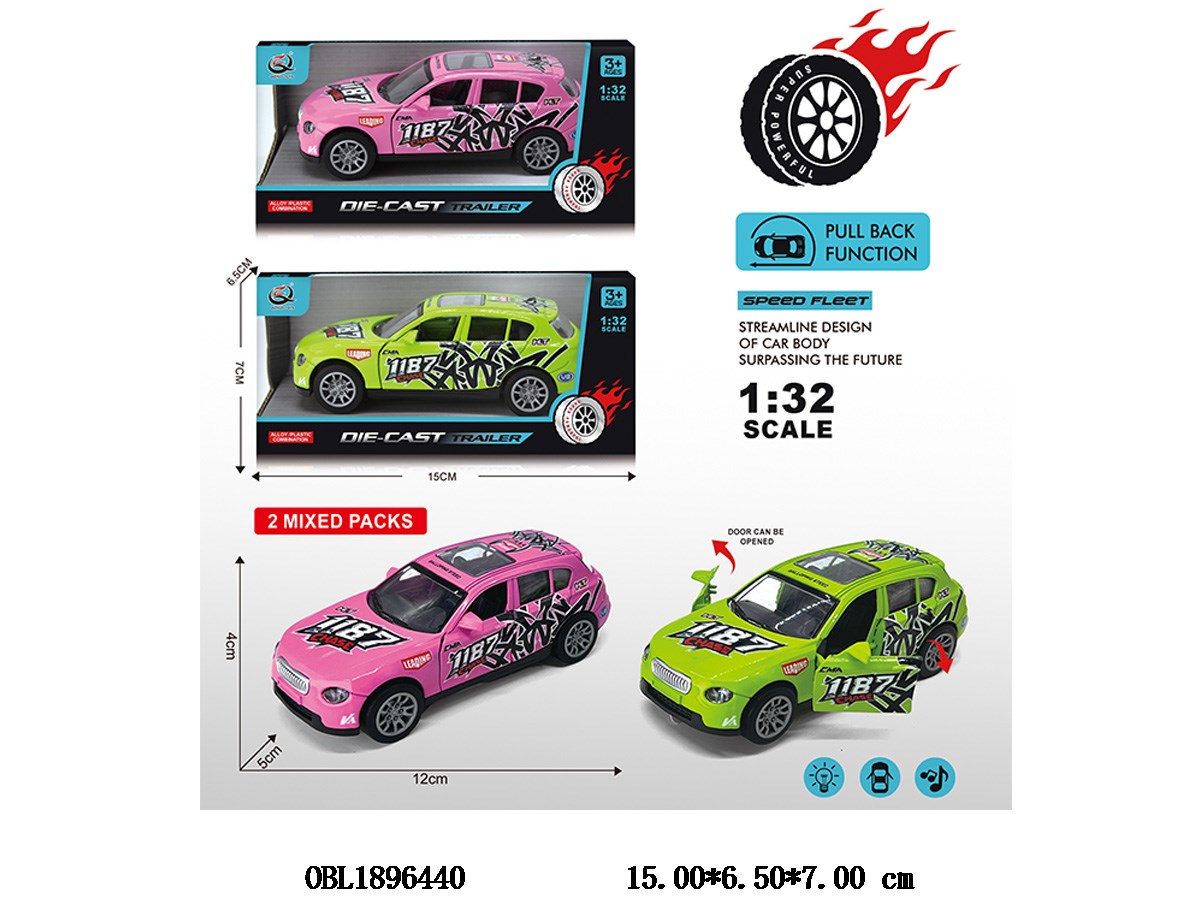 Alloy regenerative car with light and sound, capable of opening doors, 3 * AG3, electric package, 2 colors mixed