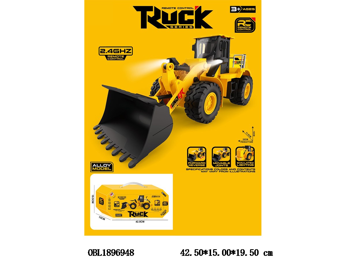 Remote control simulation bulldozer with lights and sound, equipped with USB cable, body 3.7V lithium battery included remote control 2 * AA, no power included, 2.4G frequency