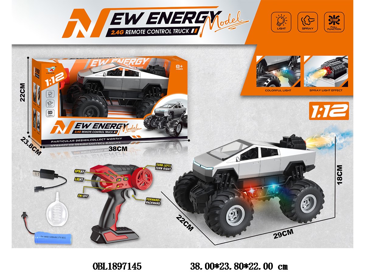 1: 12 six way remote control car with light spray, USB cable, body 3.7V electric remote control, 2 * AA non electric 2.4G, 2-color mixed installation