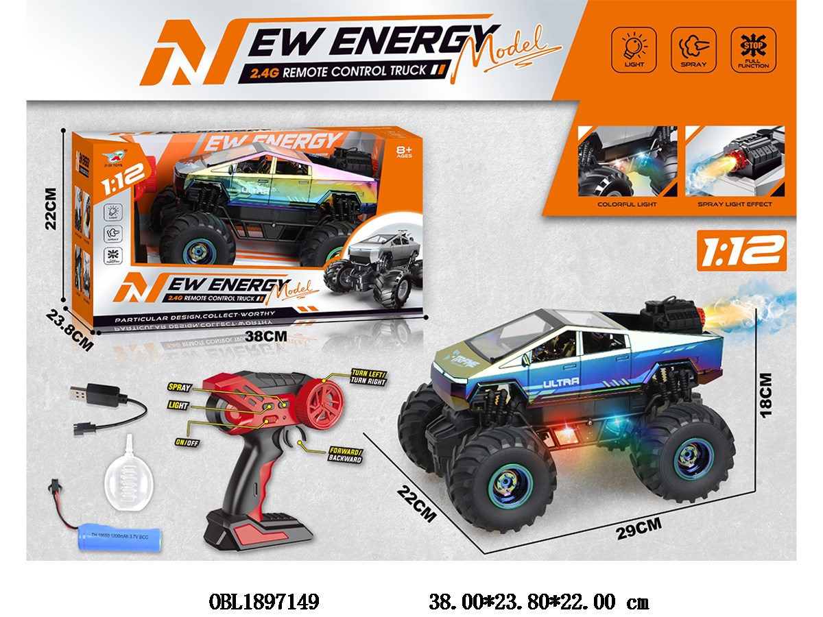 1: 12 six way remote control car with light spray, USB cable, body 3.7V electric remote control, 2 * AA electric remote control, 2.4G