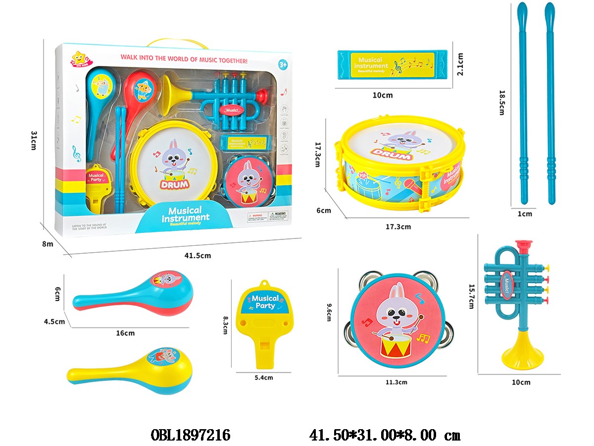 Instrument combination set, sand hammer whistle, bell drum, jazz drum, mouth organ, horn blowing