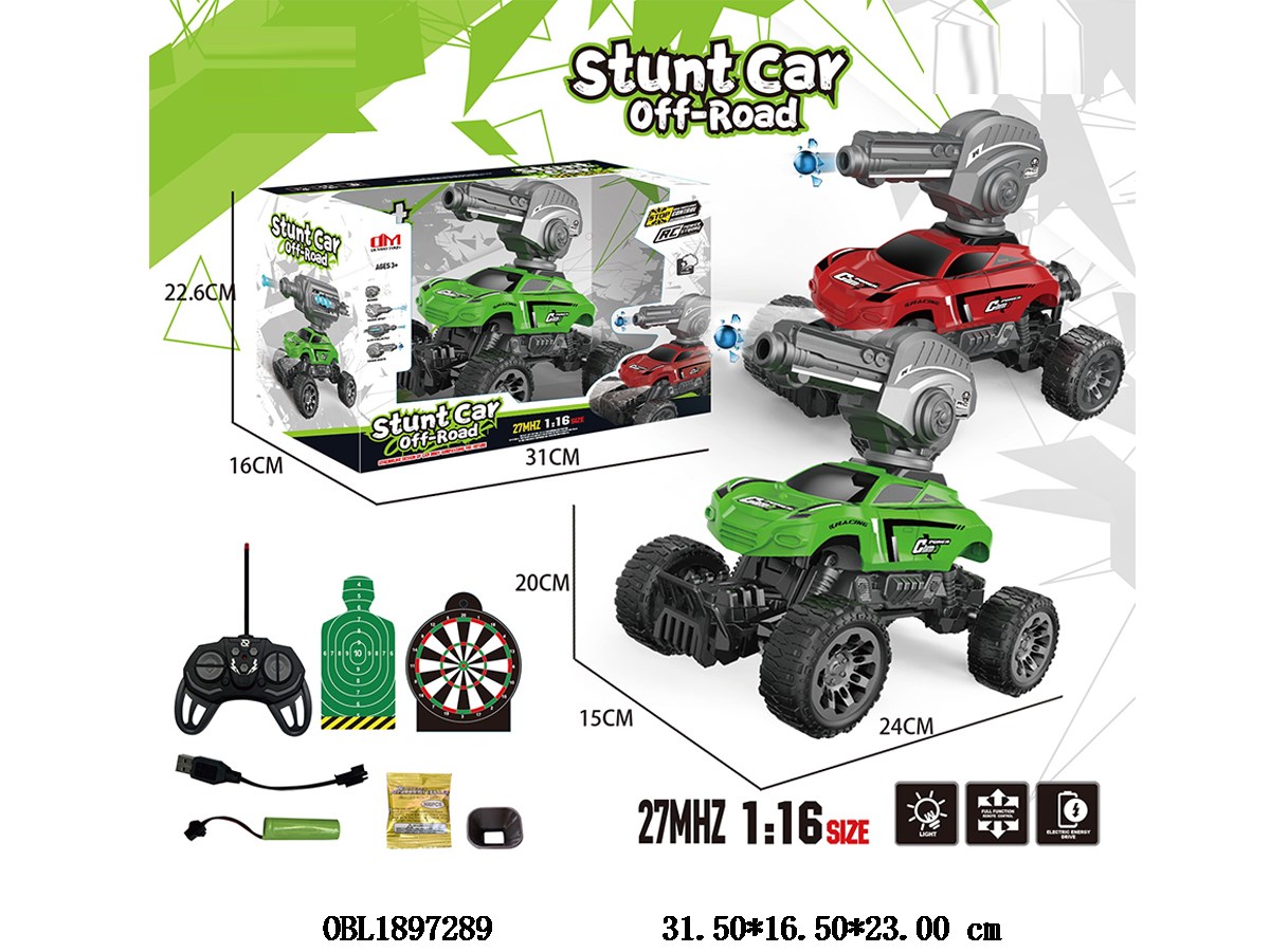 Five way remote control climbing car set with lights, capable of launching water bombs, equipped with USB cable, body 3.7V lithium battery with remote control 2 * AA without power, 27 frequency, 2 color mixed
