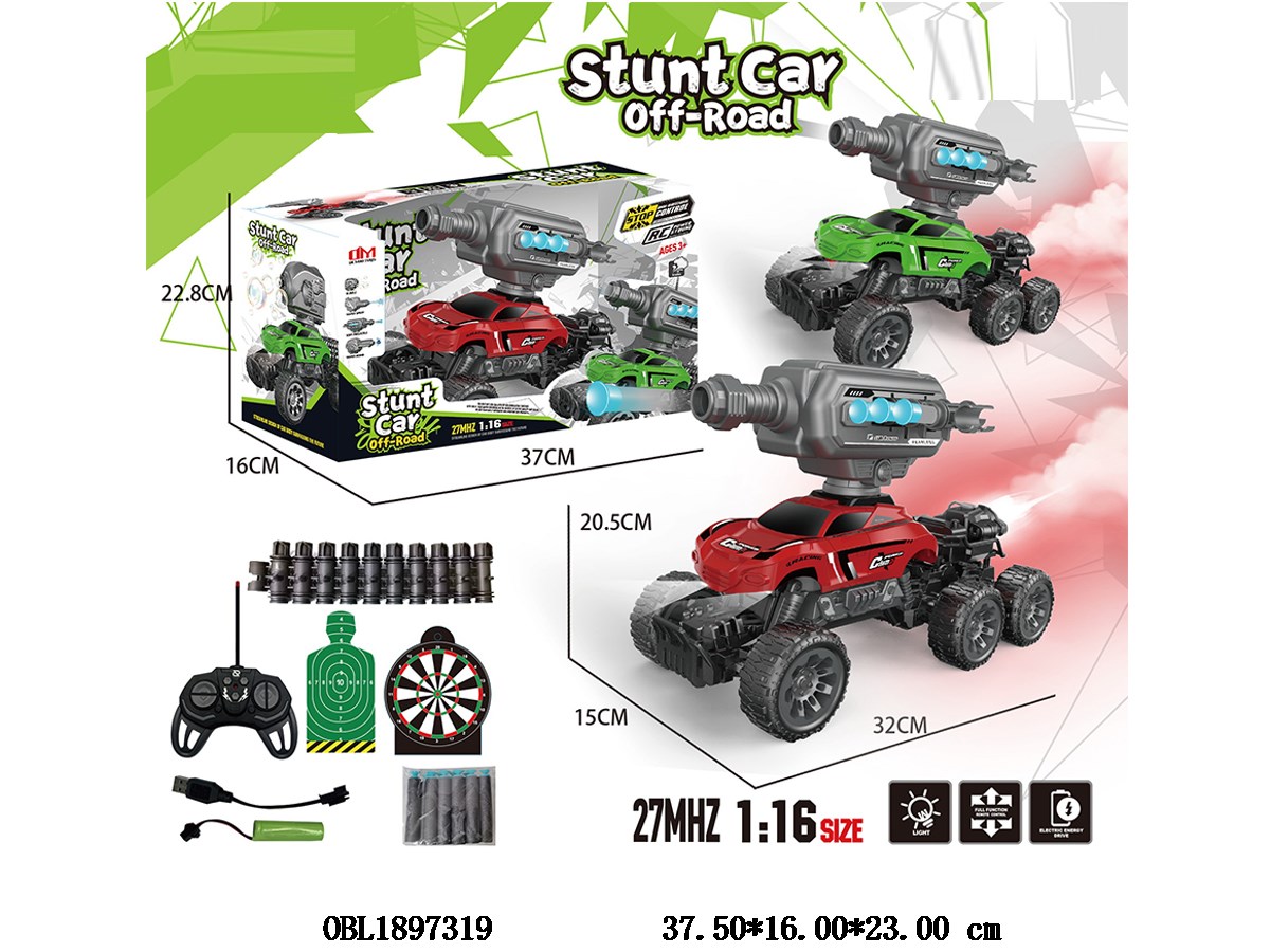 Home > R/C Car > Seven way remote control climbing car suit with light, spray, soft elastic, USB cable, body, 3.7V lithium battery, electric remote control, 2 * AA, non electric, 27 frequency, 2-color mixed installation