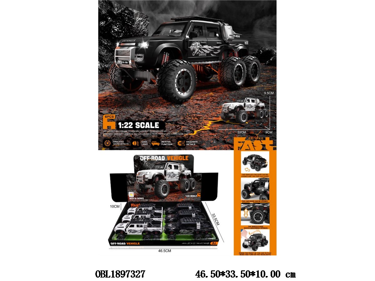 Inertial off-road vehicle with lighting and sound, 3 * AG13 package, 6 units, 1 display box, 2 colors mixed