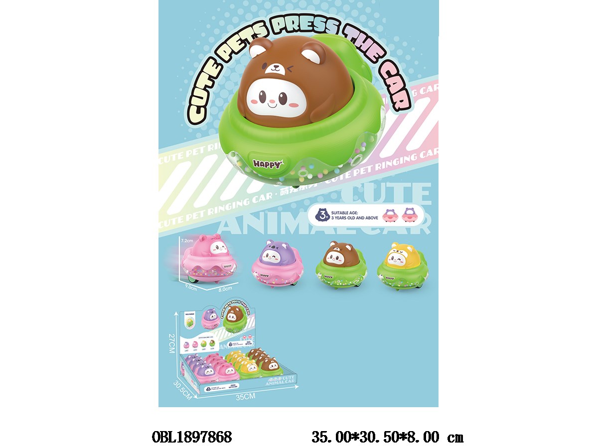 Cute Pet Ringing Pressure Car 4 Mixed Models, 16 pieces per display box