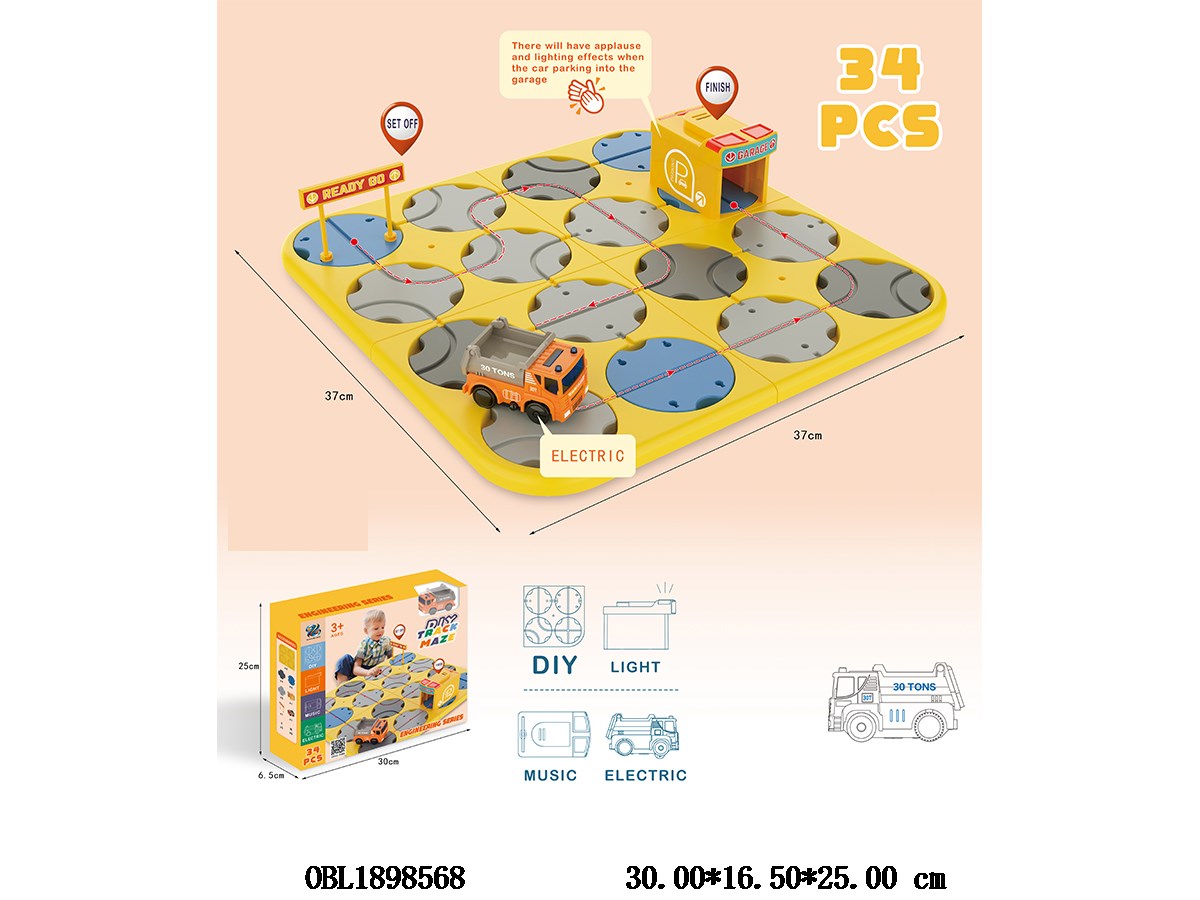 DIY versatile maze track car with sound and light garage 3 * AG13 electric car 1 * AAA non electric car 34PCS