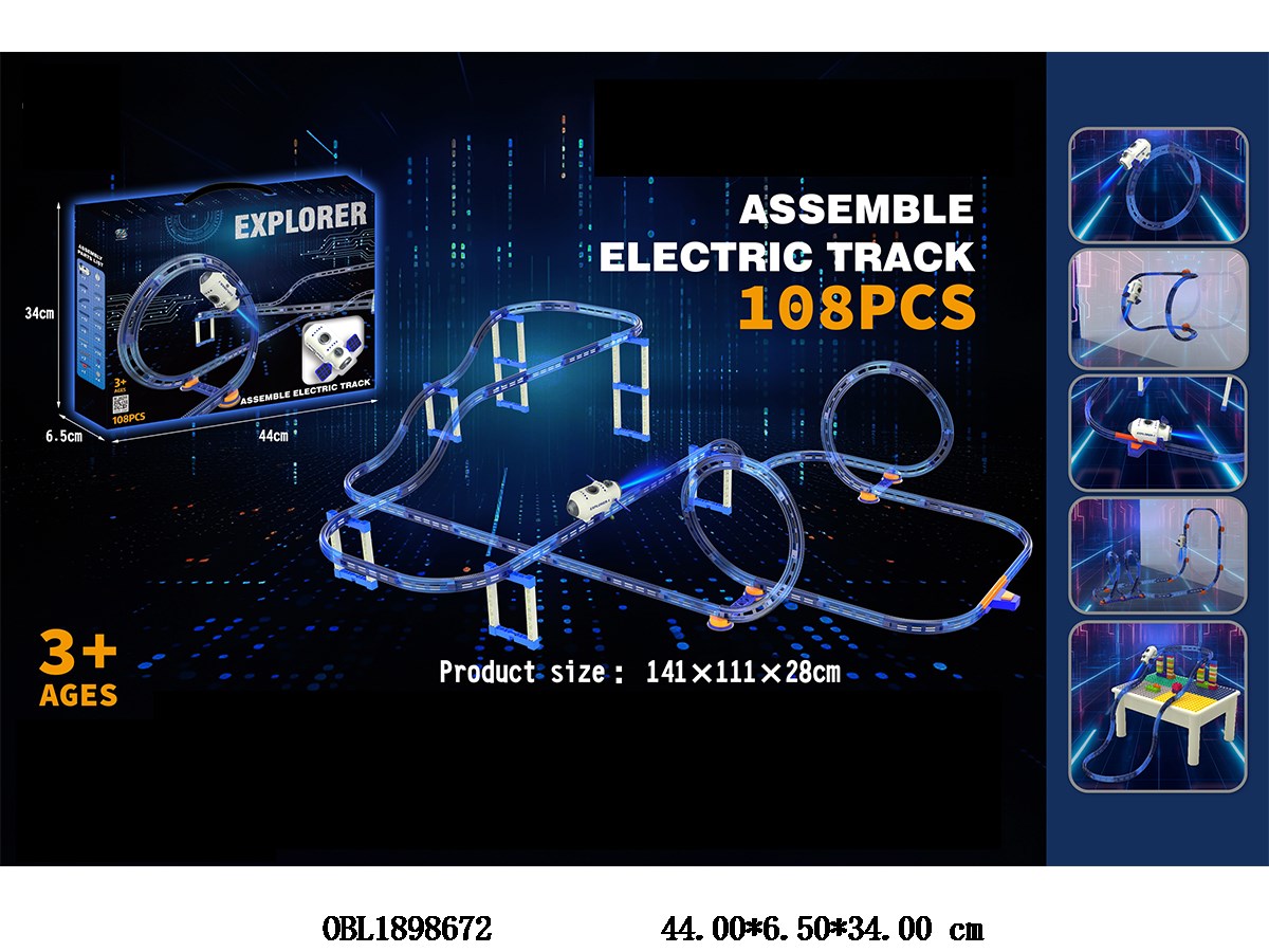 DIY space building block electric rail car with spray 3 * AAA without power