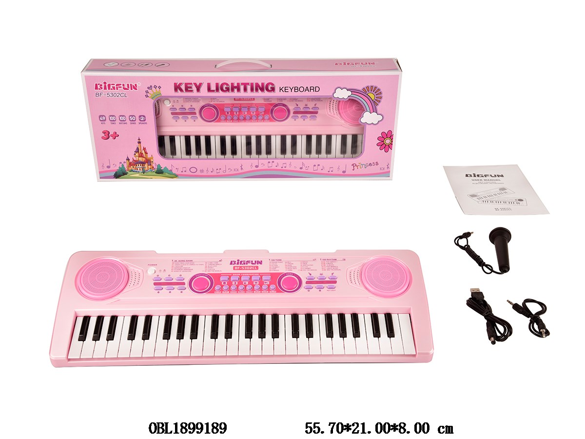 49 key electronic keyboard with microphone/audio cable/USB power cable/instruction manual/built-in lithium battery/lighting teaching 4 * AA, no power included