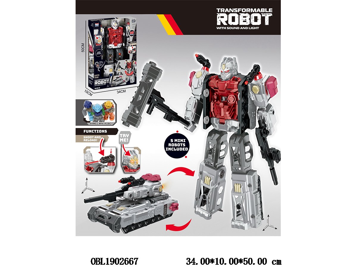 Home > Transformation > Transforming robot with lights, sound, and 5 small robots, totaling 6 * AG13, with power included