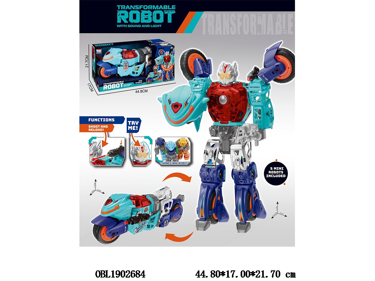 Home > Transformation > Transformed motorcycle with lights and sound, equipped with 5 small robots, 2 * AG13, and electric package