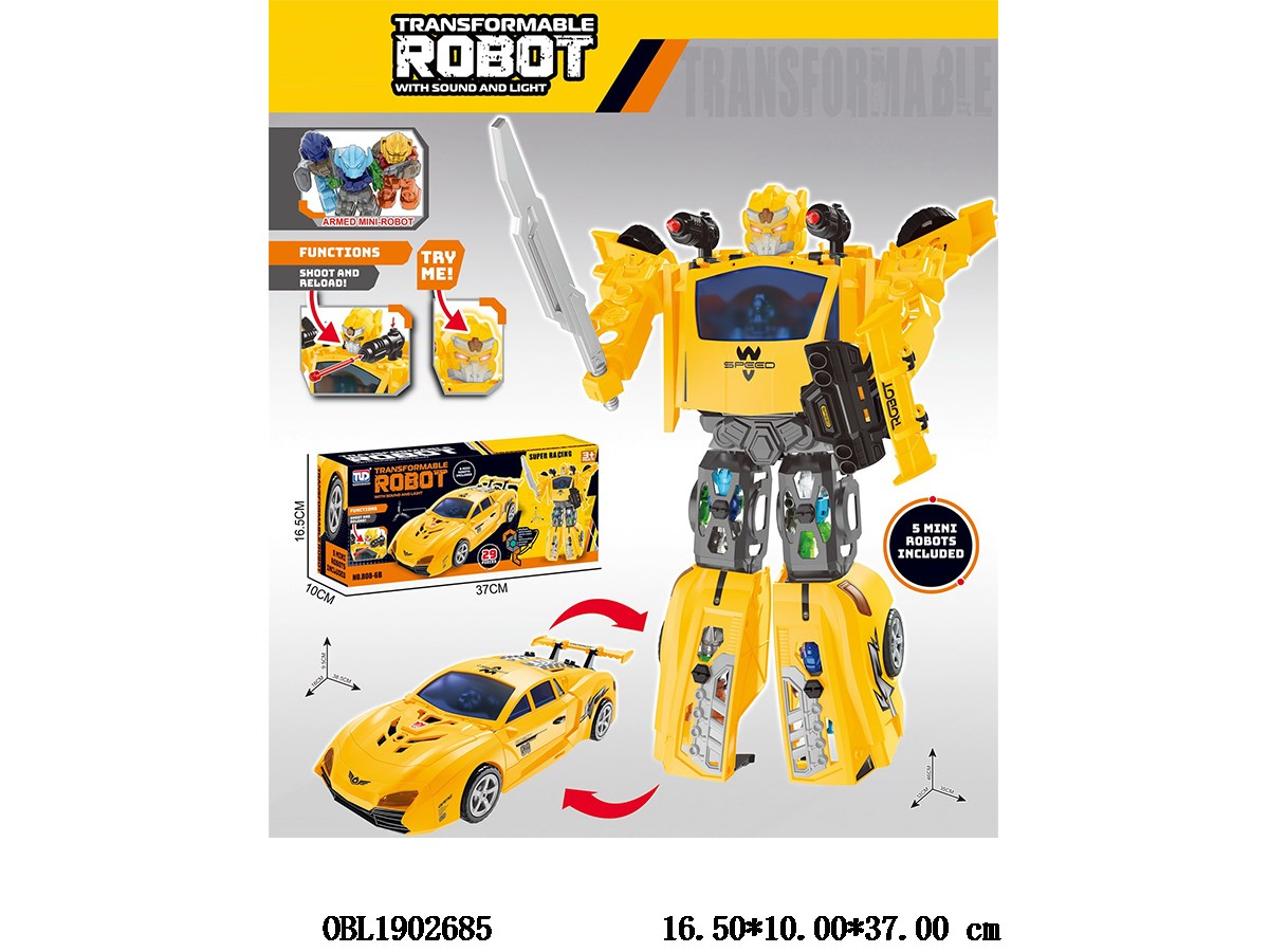 Home > Transformation > Transformed sports car with lights and sound, equipped with 5 small robots, 2 * AG13, and electric package