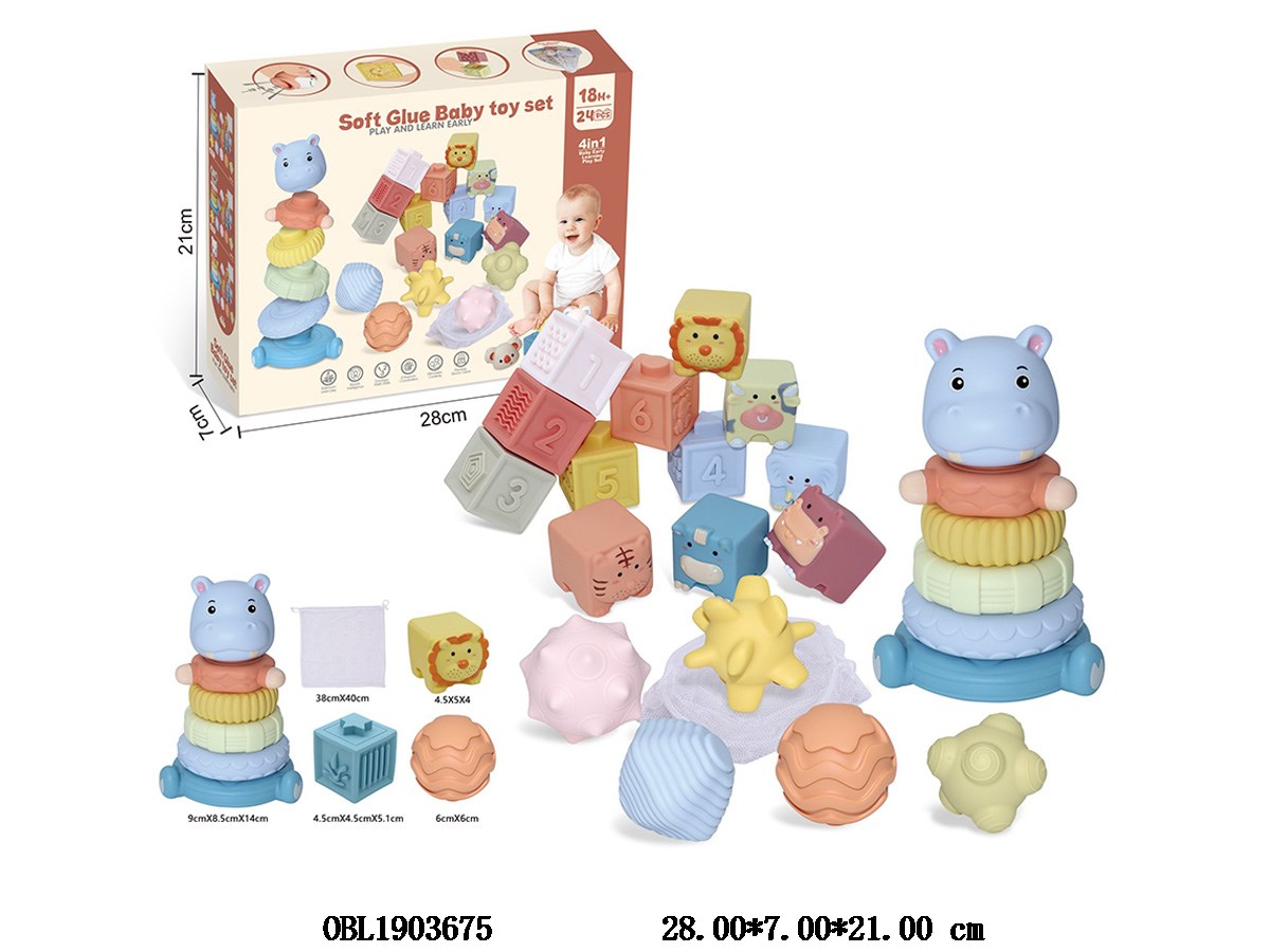 Vinyl ball/block/animal block/stacking music set with storage bag