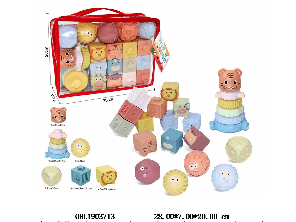 Vinyl ball/block/animal block/stacking music set with hang card
