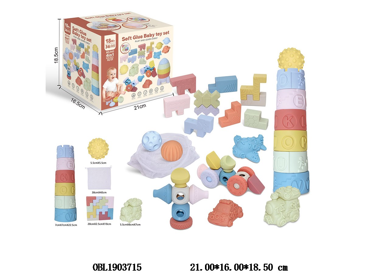 Vinyl ball/puzzle block/stacking music/small car set with storage bag