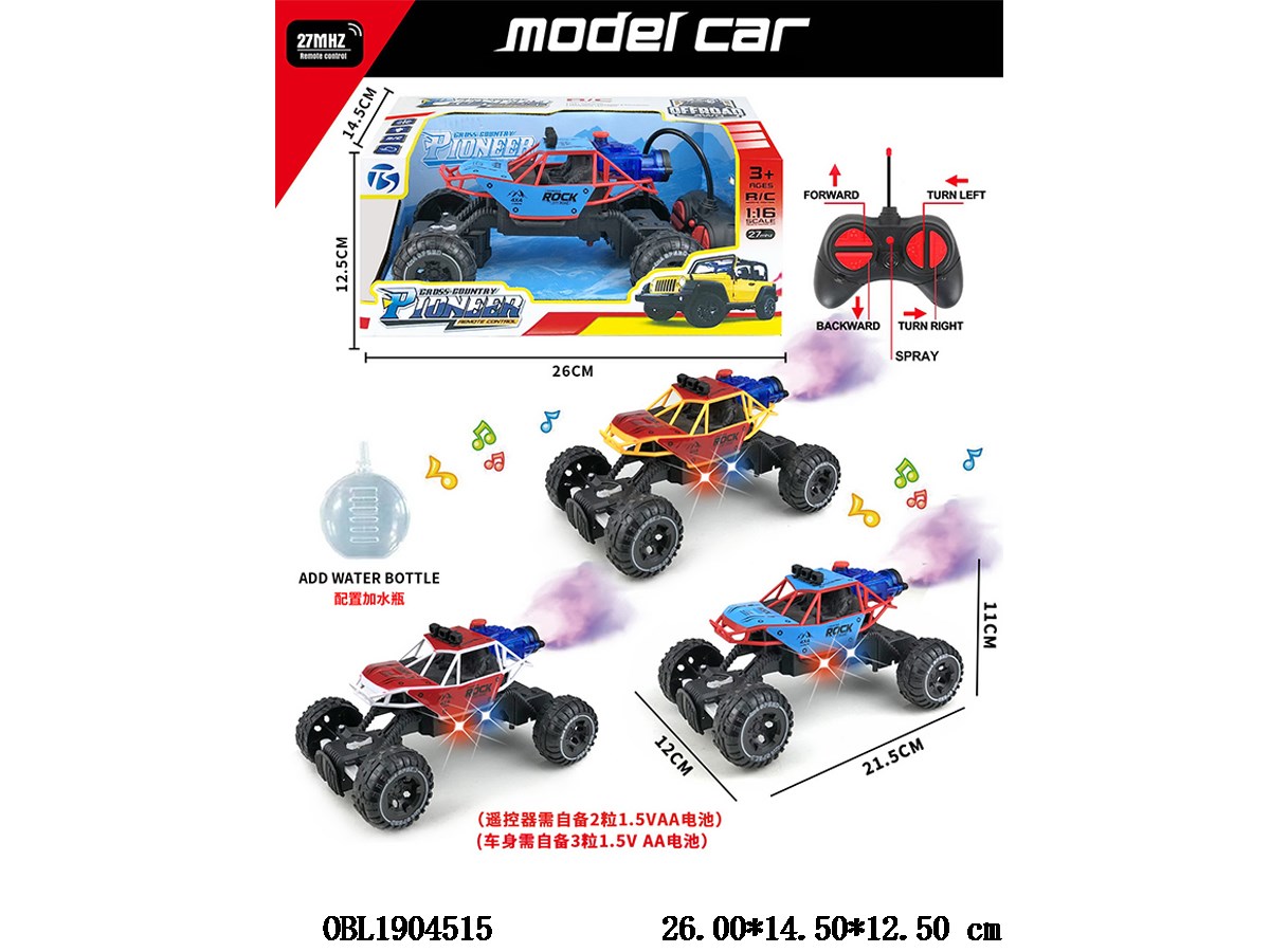 Home > R/C Car > Five way remote control vehicle with light, music, spray body 3 * AA without electric remote control 2 * AA without electric control 27 frequency, three color mixed installation