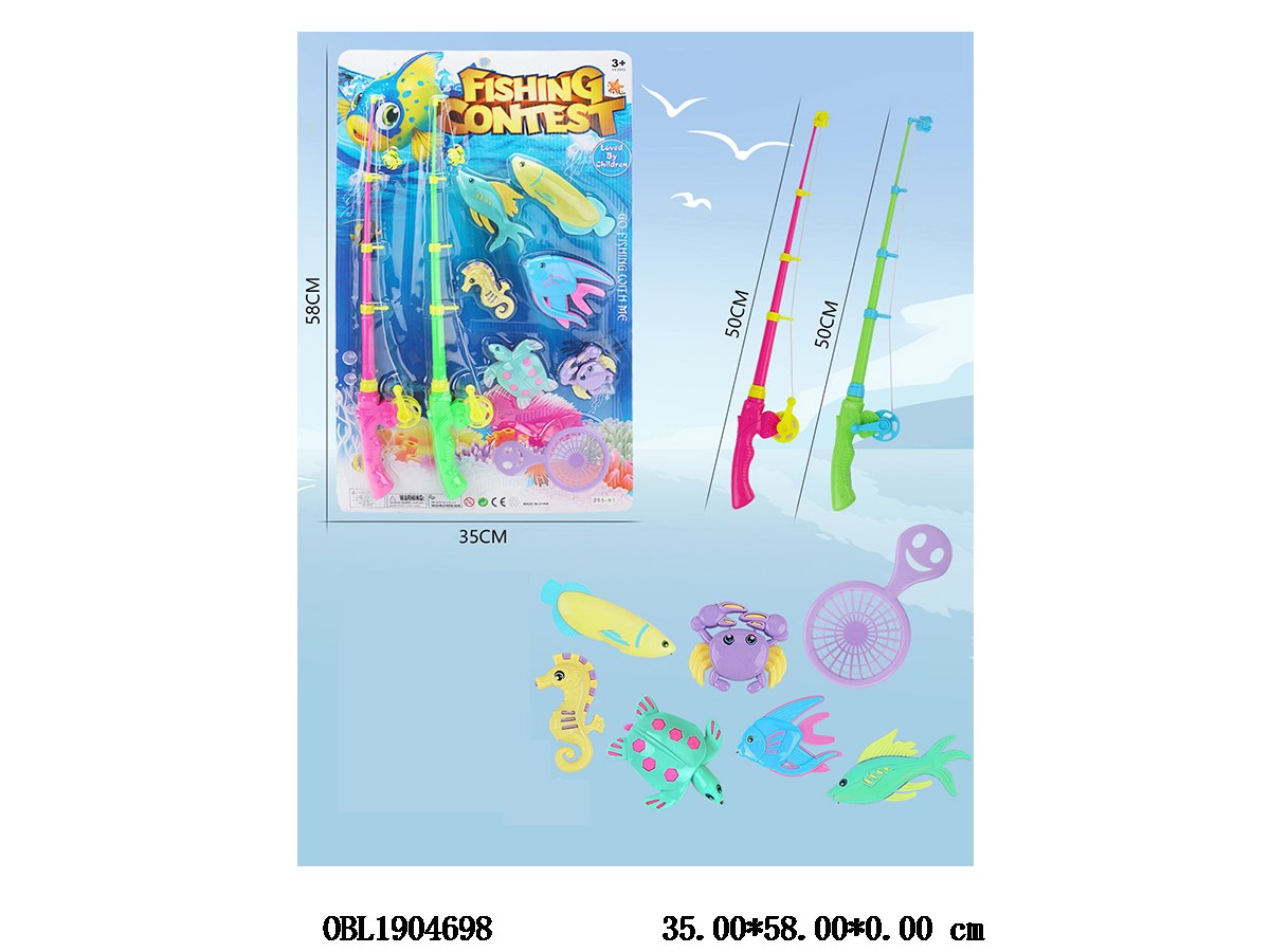 Magnetic fishing set with 2 fishing rods and net fishing