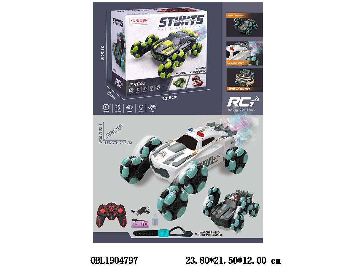 Home > R/C Car > Six wheel remote control stunt vehicle with light spray, USB cable, body 3.7v lithium battery pack, electric remote control, 2 * AA, no power pack, 2.4G frequency, two color mixed single remote control