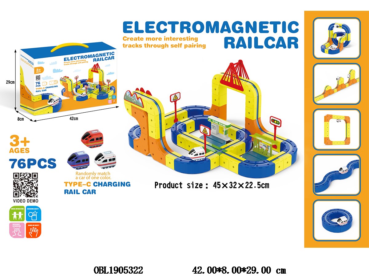 Home > B/O Railcar > Electric magnetic block track car set with 1 electric car and USB cable, built-in lithium battery pack