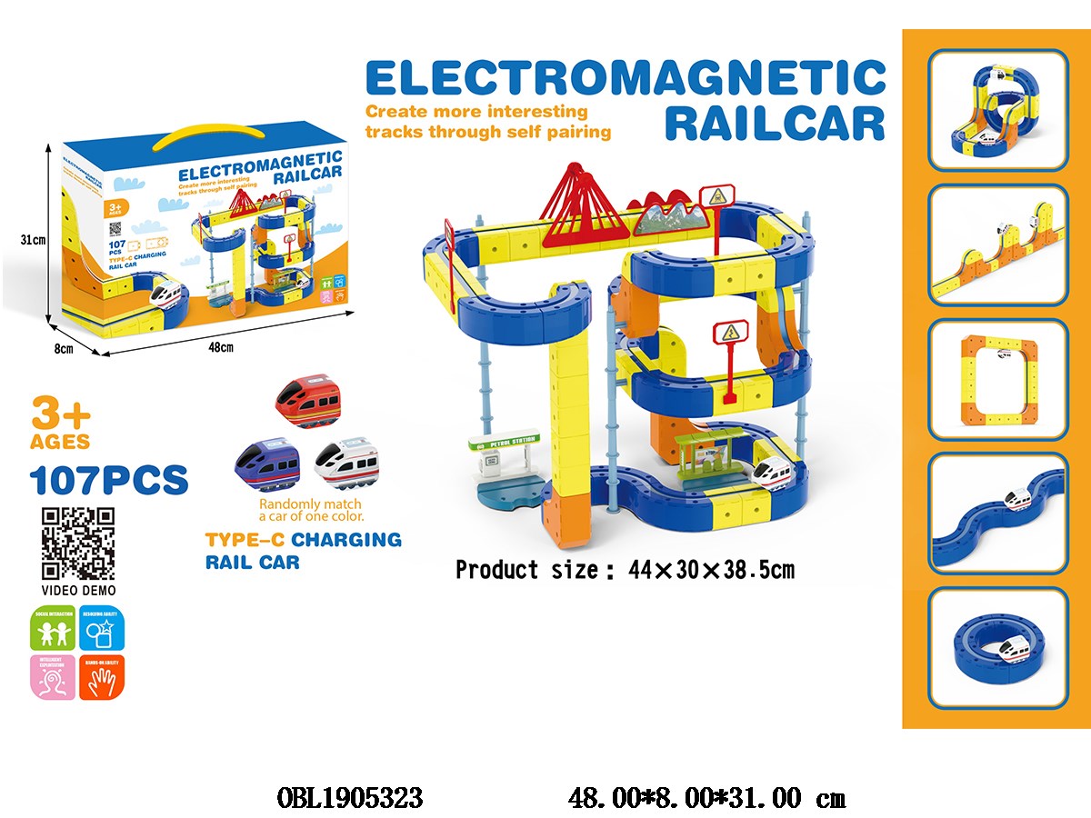 Home > B/O Railcar > Electric magnetic block track car set with 1 electric car and USB cable, built-in lithium battery pack