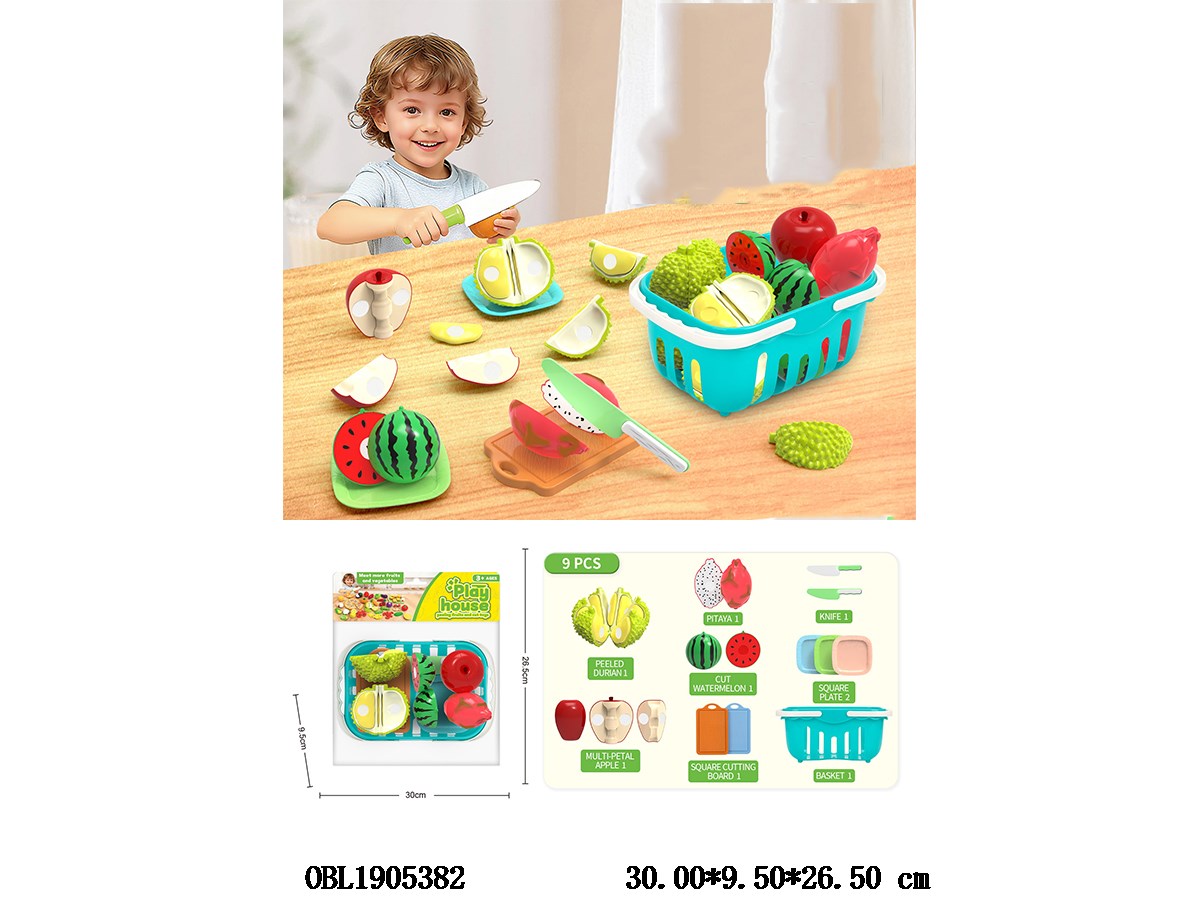 Playing house, peeling fruits, cutting joy toys with baskets