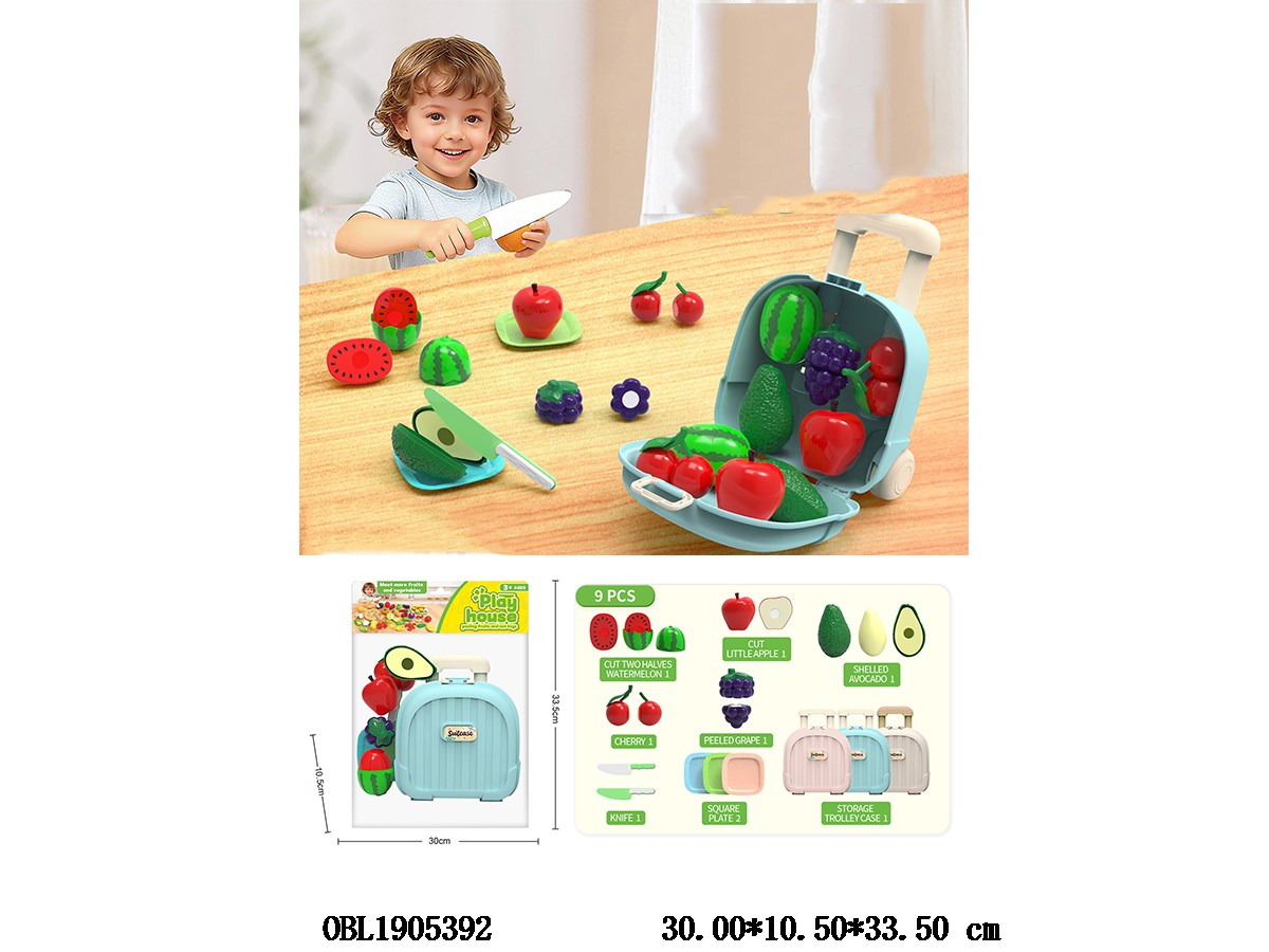Home > Fruits and Vegetables Set > Playing with a family suitcase, peeling fruits, and enjoying toys