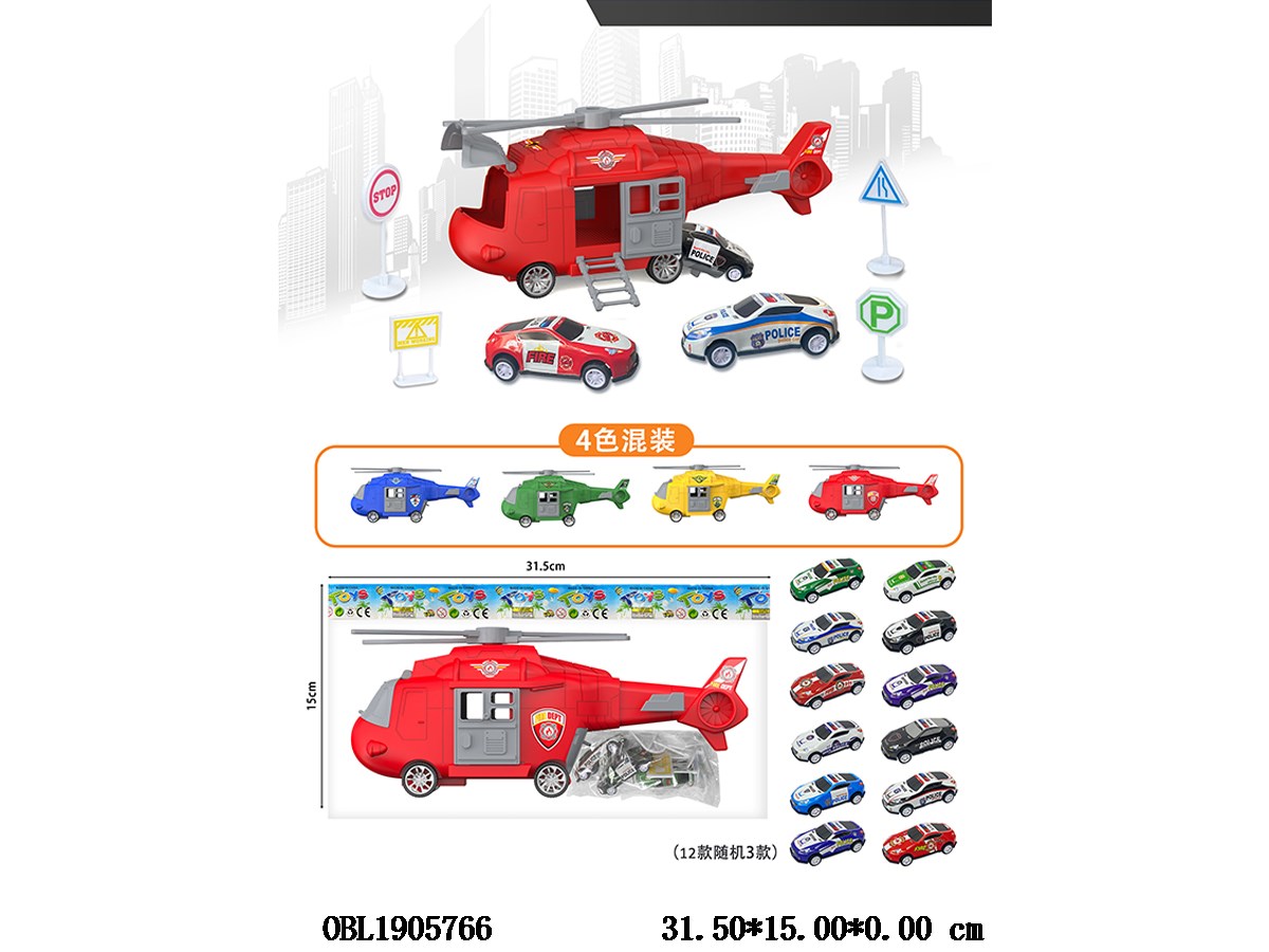 Inertial storage engineering aircraft with 3 small cars and 4 colors mixed