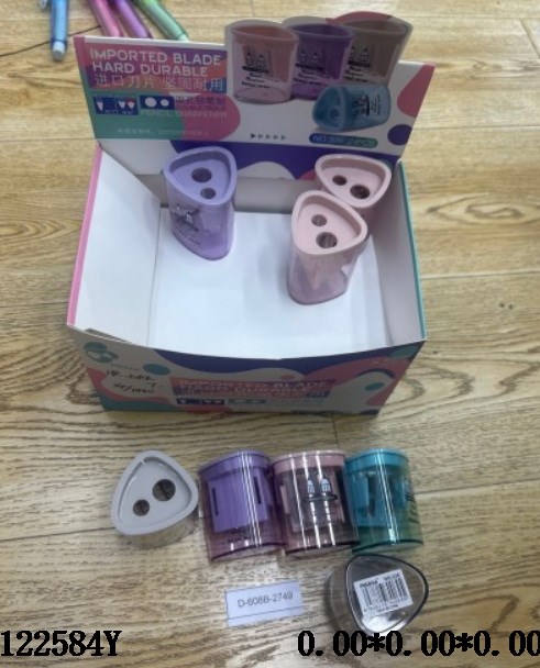 Stationery supplies, double hole pencil sharpener, 4-color mixed 4.8 * 3.5 * 3.5cm, 24/medium box