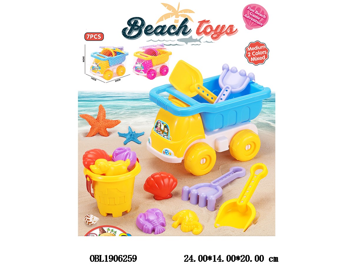 Beach toy set with hanging card, mixed in 2 colors
