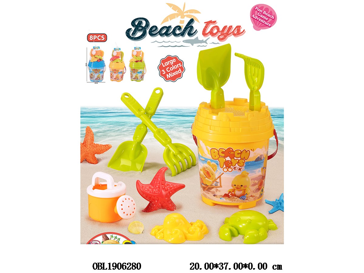 Beach toy set with hanging card, mixed in 3 colors