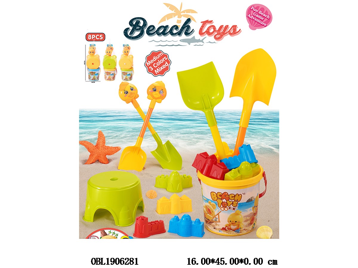 Beach toy set with hanging card, mixed in 3 colors