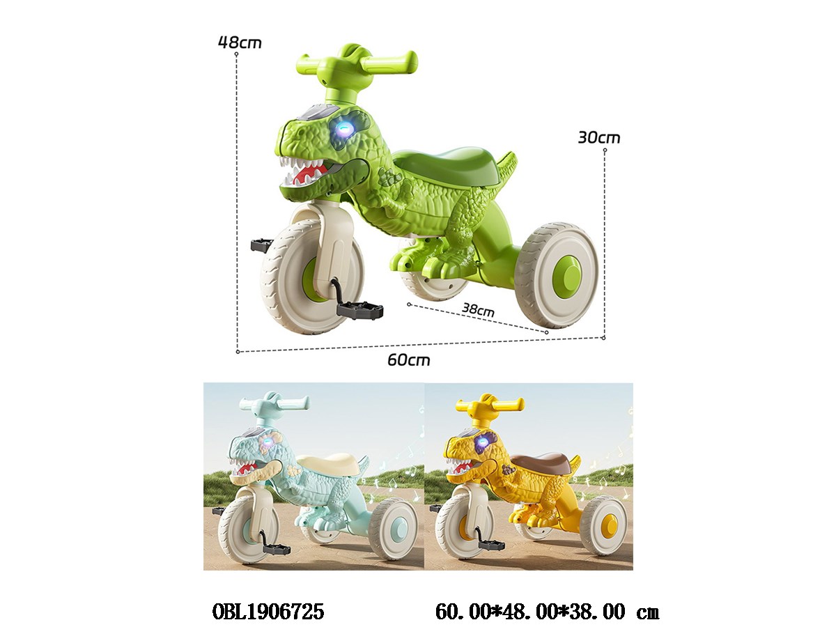 Dinosaur tricycle with lighting, music, 3 * AA, no electricity included, multi-color mixed design