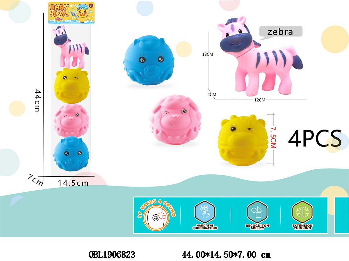 4-piece bathroom water splashing rubber massage ball with BB whistle