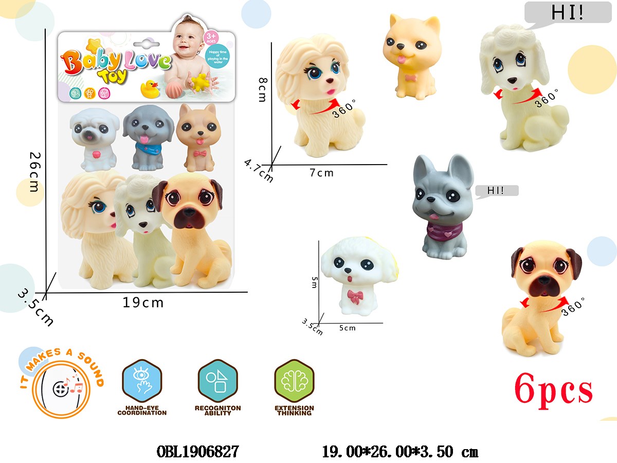 Home > Soft Plastic Animals > 6 bathroom water splashing rubber coated animals with BB whistle