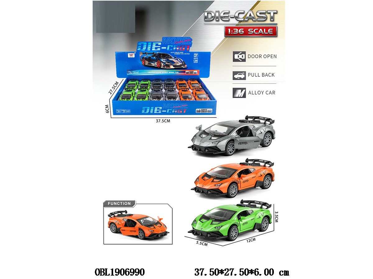 1: 36 alloy regenerative car can open doors, 3 colors mixed, 12 pieces packed in one display box