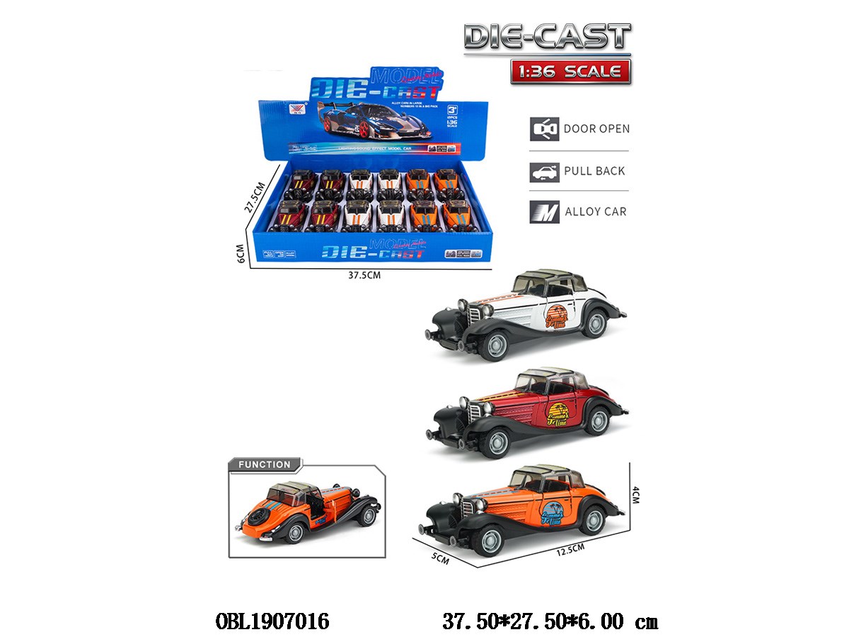 1: 36 alloy regenerative car can open doors, 3 colors mixed, 12 pieces packed in one display box