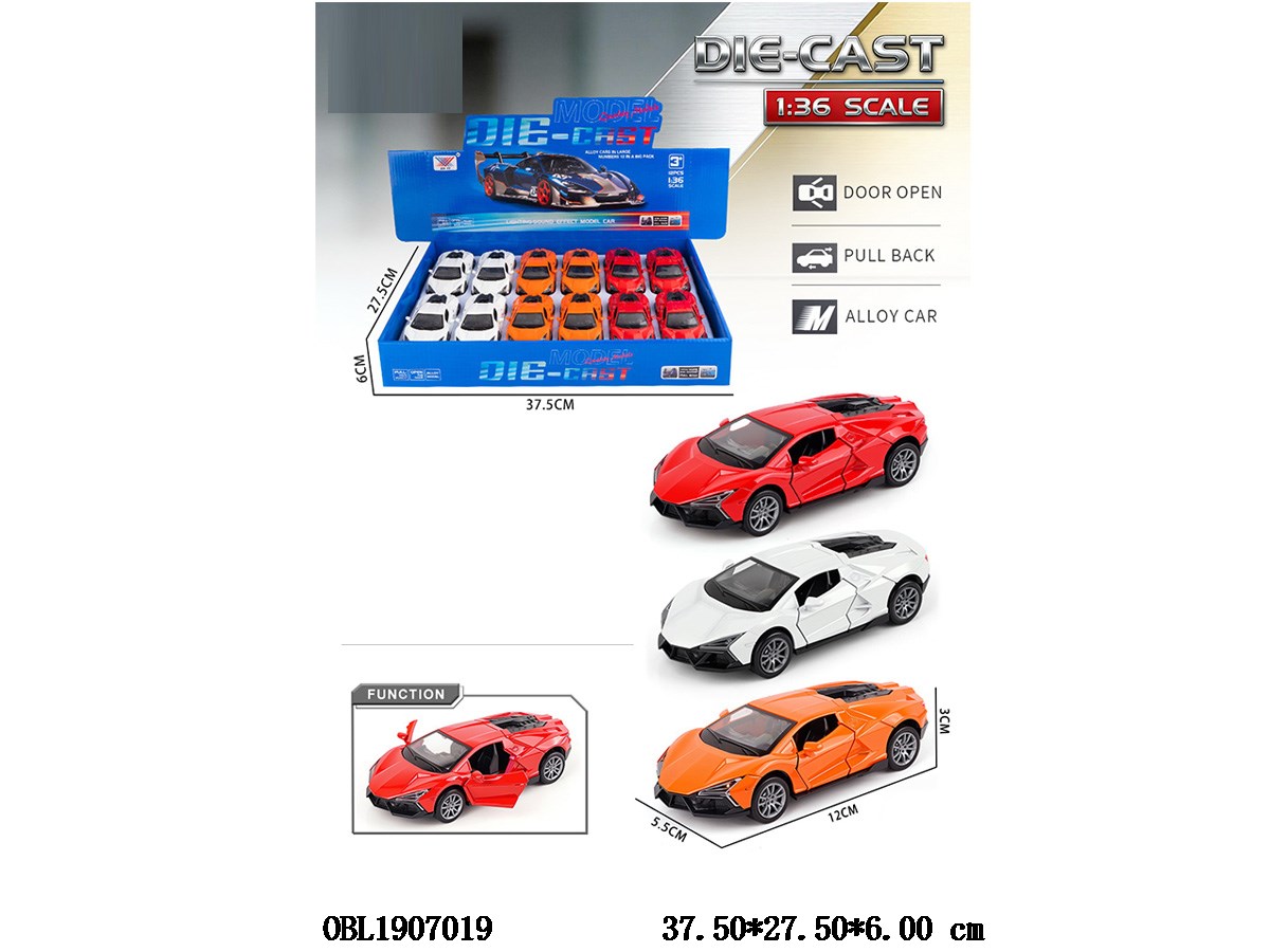 1: 36 alloy regenerative car can open doors, 3 colors mixed, 12 pieces packed in one display box