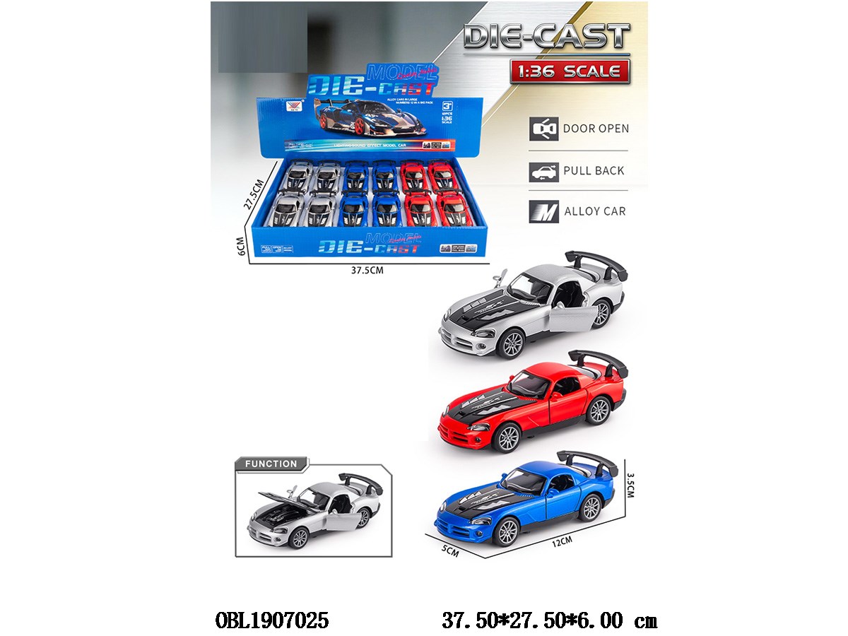 1: 36 alloy regenerative car can open doors, 3 colors mixed, 12 pieces packed in one display box