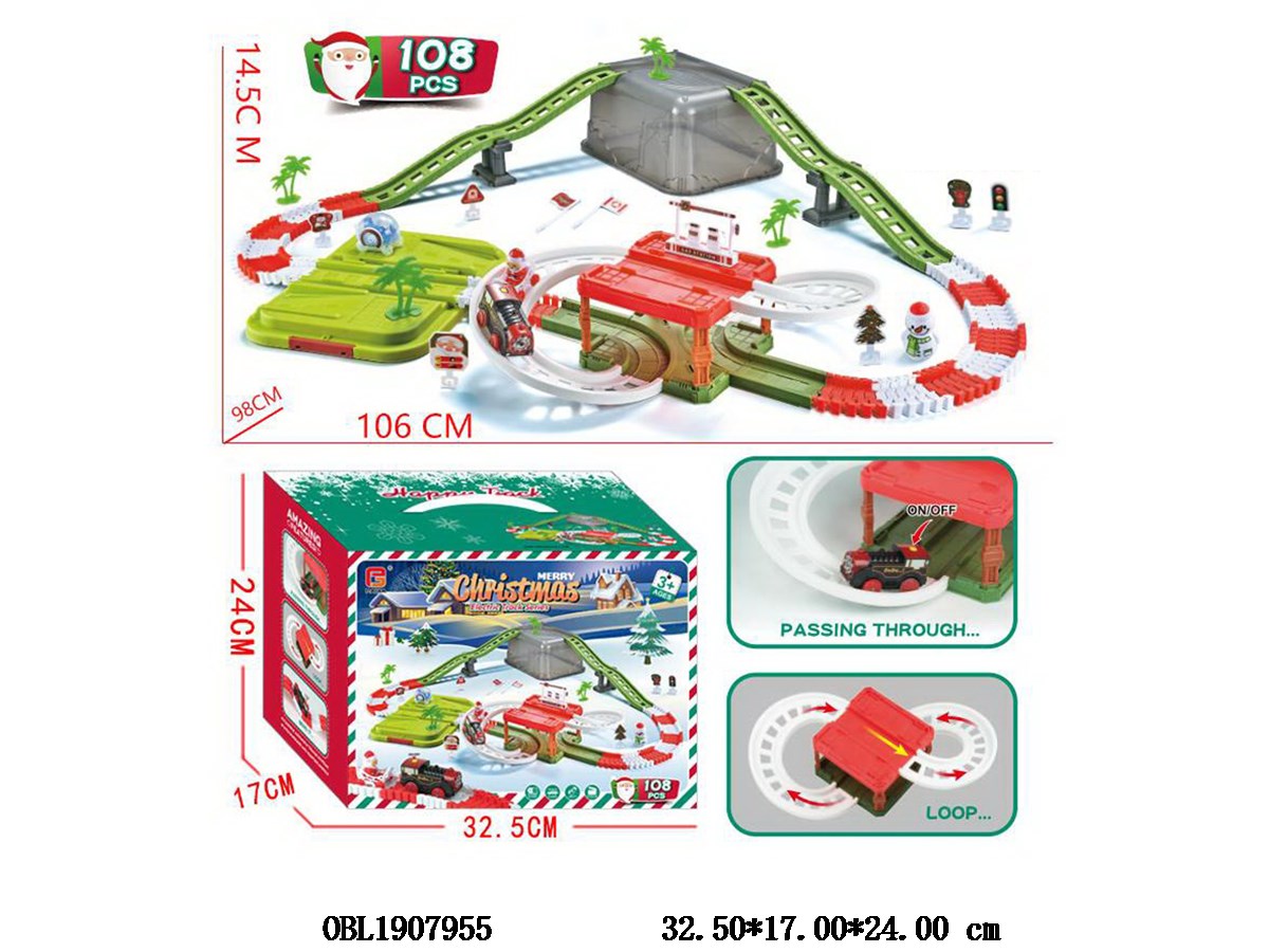 Self installed Christmas track parking lot set with 1 electric train 2 * AAA, not including electricity
