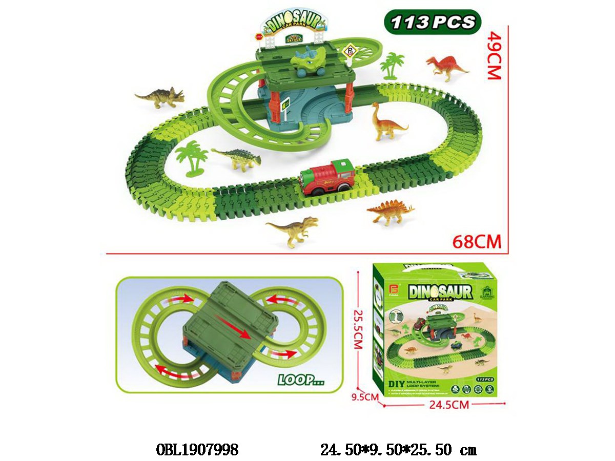 Home > DIY Parking Lot > Self installed dinosaur track parking lot set with 1 electric car and 1 sliding dinosaur car 2 * AAA, not including electricity